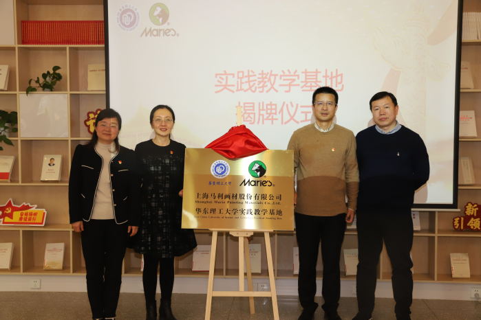 我校校友与发展联络处副处长王芝眉、皇冠最新官网党委书记袁媛、上海马利画材股份有限公司董事长蒋熙洲以及总经理闫加伟共同为实践教学基地揭牌,此次合作标志着双方将正式建立起长期稳定的合作关系,推动产教融合深入开展。