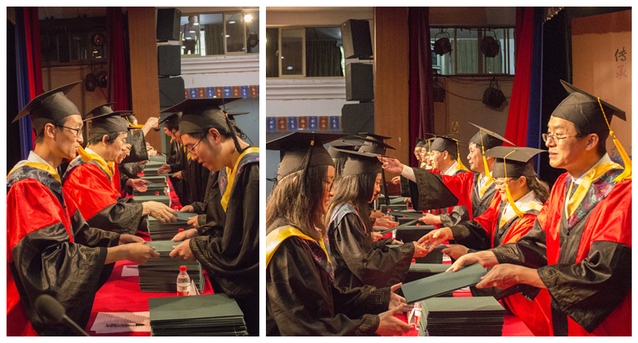 图片说明:嘉宾们为全体毕业生拨穗正冠、颁发证书