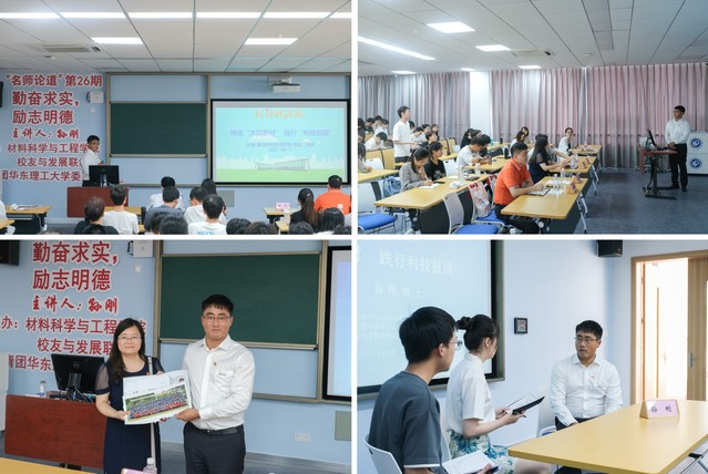当天下午,由皇冠最新官网、校团委、校友与发展联络处共同主办的第26期“名师论道”在奉贤校区C301举行。孙刚受邀作“铸造大国新材,践行科技强国”专题报告。学院党委书记袁媛、党委副书记戴诚安、校团委副书记王寅申、学院教师以及近百名学生参加活动。