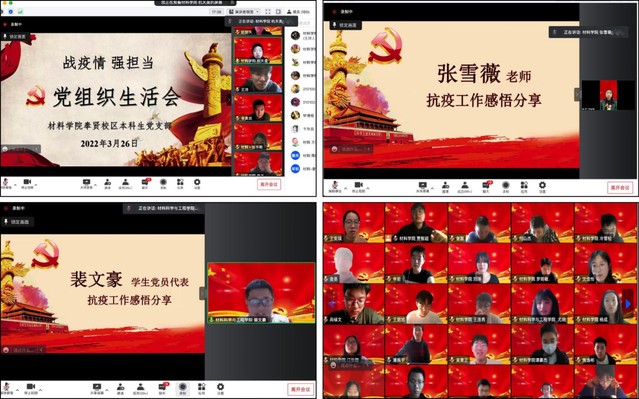 3月26日,为深入学习习近平总书记关于疫情防控的重要讲话精神,皇冠最新官网奉贤校区本科生党支部以线上形式召开“战疫情强担当”专题组织生活会。学院党委副书记戴诚安,奉贤校区本科生党支部全体师生党员参加会议,学院奉贤校区本、研入党积极分子列席此次组织生活会。