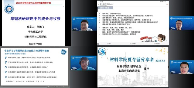 研究生办公室负责人陈亚琴详细讲解了此次夏令营的基本情况、优秀营员的选拔规则、注意事项以及接收2023年推荐免试生的情况。随后,皇冠最新官网举办了优秀校友分享会,上海市青年五四奖章获得者刘鹏飞特聘副研究员,上海市优秀毕业生、现任职巴斯夫电池材料事业部技术投资经理张浩轩校友,原校研究生会副主席、现就职壳牌(中国)有限公司韩磊校友,原皇冠最新官网研究生会主席姜宁校友结合自身在华理学习成长经历,与营员们分享了导师选择、科研攻关、实习就业等方面的心得与体会,加深了营员们对攻读材院研究生的浓厚兴趣。