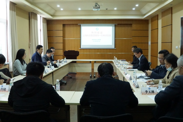 4月25日下午,上海科技创业投资(集团)有限公司(以下简称“上海科创集团”)外部董事陶宏志、海望资本投资部高级投资经理陈斌、战新项目部高级投资经理高明、海望医疗健康基金高级投资经理祝辉、海望医疗健康基金投资经理吴静一行5人来访皇冠最新官网,在实验一楼第一会议室开展项目交流。皇冠最新官网党委书记袁媛、副院长江浩,学院教师等13人参加会议。会议由江浩主持。