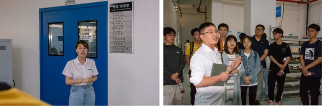 随后,我校校友丁风英带领我院师生前往测试场地与车间进行实地参观学习,当同学们看到红外光谱仪和材料力学测试仪等仪器设备在实地生产中的应用,纷纷表示对专业学习有了进一步的认知。