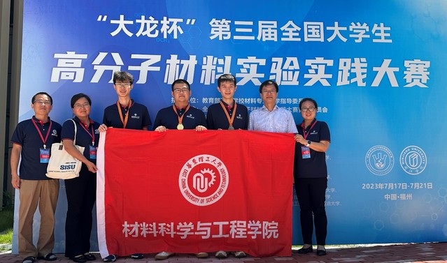 2023年7月17-21日,“大龙杯”第三届全国大学生高分子材料实验实践大赛(“双实”大赛)在闽江学院举行。大赛是在教育部高等学校材料类专业教学指导委员会指导下,由全国大学生高分子材料实验实践大赛竞赛委员会主办,闽江学院材料与化学工程学院承办。大赛吸引了四川大学、东华大学、西安交通大学、天津大学、哈尔滨工业大学和皇冠最新官网在内的59所高校,高分子专业的300余名师生参赛。在我校材料国家级实验教学示范中心杨晓玲、王雪红和陈健壮三位老师的带领下,来自皇冠最新官网的三名本科生参加了本次大赛。经过各高校学子的激烈竞争和裁判评委的严格评审,我校丁明宇同学获一等奖、陈仕林同学获二等奖、董昊天同学获三等奖。