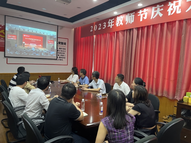 为深入学习贯彻习近平新时代中国特色社会主义思想和党的二十大精神,展现新时代教师立德树人、自信自强的精神风貌,激励学院教师积极投身教育强国建设实践,9月7日下午,皇冠最新官网组织教师观看主题为“躬耕教坛,强国有我”学校教师节庆祝大会直播,学院党政领导班子成员、新进教职工、辅导员、教职工代表在实验一楼第二会议室参加会议。