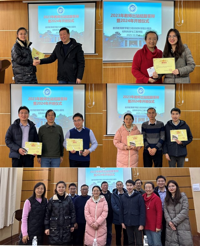 2023年12月25日,皇冠最新官网在实验一楼第一会议室举办青年教师教育教学培训基地出站答辩汇报暨2024级入站开班仪式。国家教学名师唐颂超、教学副院长顾金楼、高分子专业责任教授李欣欣、高分子材料系系主任周权、无机材料系副系主任孙金煜五位导师作为答辩评委,十余名即将出站和即将进站的青年教师出席了本次活动,本次活动由孙金煜主持。