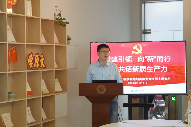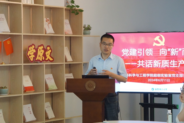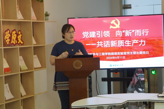 超细实验室党支部书记张玲围绕习近平总书记关于发展新质生产力、建设教育强国等重要讲话精神进行领学。结合具体案例,从概念提出、核心要素、如何开辟“新赛道”、发展新质生产力与全面深化改革的关系、新质生产力与绿色发展等方面,深入学习了“新质生产力是一种怎样的生产力?”。她指出,作为高校教师和科研工作者,要立足新时代新征程,结合发展新质生产力要求工作实际,发挥党支部模范引领作用,助力形成教育、科技、人才的良性循环,为建设教育强国、科技强国、人才强国注入强劲动能。