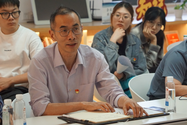 随后,师生党员代表,结合自身行业和研究方向交流研讨如何助力发展新质生产力。超细实验室党支部成员陈爱平回想起第一次了解“新质生产力”的场景,他谈到,发展新质生产力要瞄准方向,深入思考,要防止一哄而上、泡沫化,也不要搞一种模式,而是要实实在在地通过做实事推动新质生产力的发展。材料硕士第四党支部的管奕琛结合参加第33届中国国际玻璃工业技术展览会的经历谈到,高校研究生是人才蓄水池的源头活水,作为新时代材料专业的研究生,树立专业自信、深化专业能力,培养自驱力、提升创造力,了解材料市场、深入认识行业。