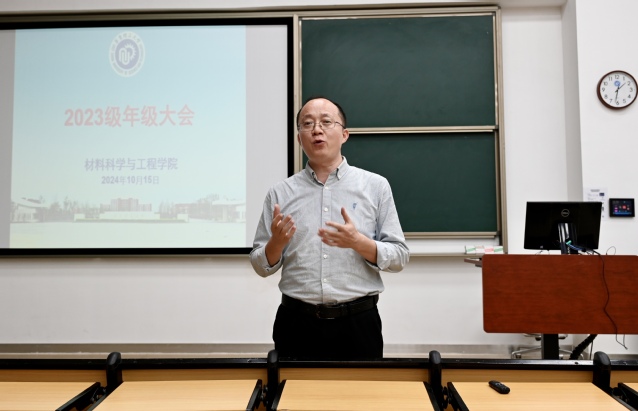 2023级辅导员李廷雨分析了大一学年成绩情况,强调大学生的根本任务仍为学习,同时用具体案例说明考试违纪的红线坚决不可触碰。